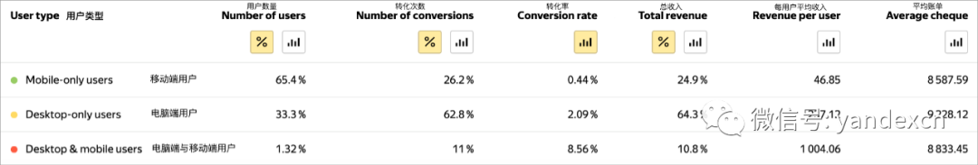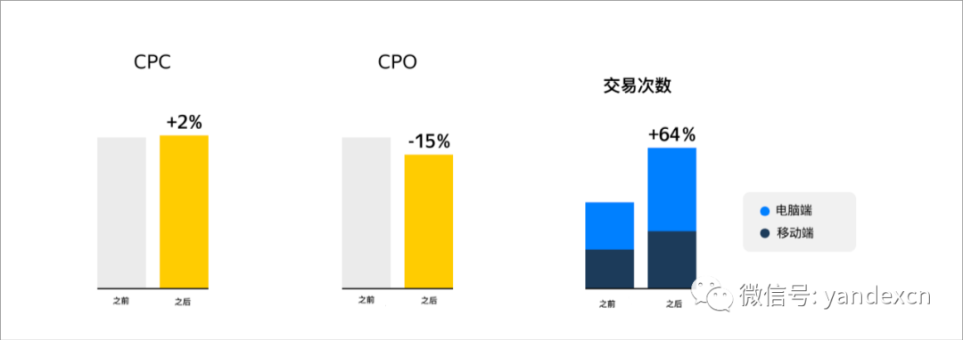 我们的一些客户在测试框架内完全分开购买移动端与电脑端效果广告。据他们的案例显示,通过这样的方法可以提高广告的整体效果。