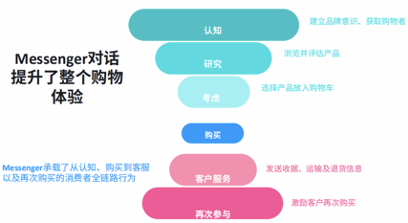 他们通过赞助消息与客户重新取得了联系。具体操作就是通过广告的形式在Messenger上发赞助商的消息。Messenger中的赞助广告的表现远远超过其他公司的广告系列。在2019年2月5日到7日之间,取得的成绩是点击率提高了10.6倍,销售量提升了40%,广告花费回报提升了7.5倍。以上两个是Facebook官方案例,除此,王婉菲还举了她们团队服务的某一个国内出海独立电商的例子。在同预算、同受众、同素材的情况下,在web conversion和Messenger Conversion上分别投放的结果来看,Messenger conversion的广告系列,加购率是web coversion的1.84倍。显然,Messenger的效率更高。一是,有些商家认为拥有一个Messenger Bot工具,就拥有了一切。在王婉菲看来,首先要有明确的定位,Bot的使用场景以及首要解决的痛点要有非常清晰的理解。不同场景的解决方案不同。持续的与用户互动和转换,3分靠工具7分靠运营。会用word打字,不代表你能做出精美的模板。会用和用得好是不一样的概念。建议有专业的团队来协助商家进行需求分析,场景定位,Bot内的对话流的搭建设计。王婉菲认为,搭建一个成功的Messenger Bot大概要分四步走:是解决售后问题,还是解决导购问题,是给网站增加日活,还是降低弃购率。卖家必须有一个非常明确的规划。对于品牌客户,需要给Bot定一个语言风格调性,活泼的、可爱的、成熟稳重的,包括配图等,这些都需要提前设计。第二步是流程的设计,包括Bot和客户触点设计、对话脚本的设计等。在整个用户的购物旅程中,在什么场景植入Messenger,以什么内容和用户对话,引导用户的行动目标是什么。第三步是进行效果监控,以及内容迭代,这也是一个持续优化自己产品的过程。第四步是Policy同步政策,Messenger的政策更新比较快,接口功能也在不断迭代。需要及时解读并进行应用。Messenger对话提升了整个购物的体验,承载了从认知到购买、客服,再到重复性购买的全链路行为。因此,在商家网站上加一个Messenger按钮,可以让用户能够很快找到产品,建立品牌意识、获取购物者的信任。同时,Messenger也是一个流量的矩阵,王婉菲介绍,其共有四种引流入口,分别为FB广告投放、对话插件、FB帖子回复、扫描二维码。那么,有几百万、上千万粉丝的大卖家,怎么将粉丝转换成潜在的客户呢?王婉菲认为,这样的卖家可以在帖子上做一些活动,给粉丝发一些专属活动的券,就可以把这些粉丝洗到自己的流量池子里。此外,值得注意的是,Messenger引流并不是适合所有广告主,王婉菲建议,有以下几种心态的广告主更有可能获得成功:喜欢着眼于未来。有人喜欢选容易的事情做,有人有更长远的生意目标,不介意花力气为未来打算,把自己的综合竞争力夯实。在蓝海变为红海厮杀之时,早已进入新的蓝海。有运营能力。能够持续优化自己网站,愿意多花精力在用户运营上。开放好学。对任何新鲜事物保持好奇心,愿意接受新鲜玩法,敢为人先。如果你已经具备了以上这些条件,就剩下最后一步了,也是最重要的事:找到合适的合作伙伴。飞书深诺旗下自主研发智能营销机器人Meetbot,聚焦于帮助广告主将各种用户流量更好的转换为企业自有资产,并低成本进行营销服务,提升用户复购和满意度,最终提升用户终身价值,降低总体获客成本。Meetbot团队拥有丰富的实操经验,具备多行业解决方案。为“电商、金融、品牌”领域客户提供包含“一键创建模版、售前咨询、定时发送群通知、搭建品牌个性、建立粉丝美誉度”在内的一系列运营服务,助力独立站卖家低成本获取高价值用户。