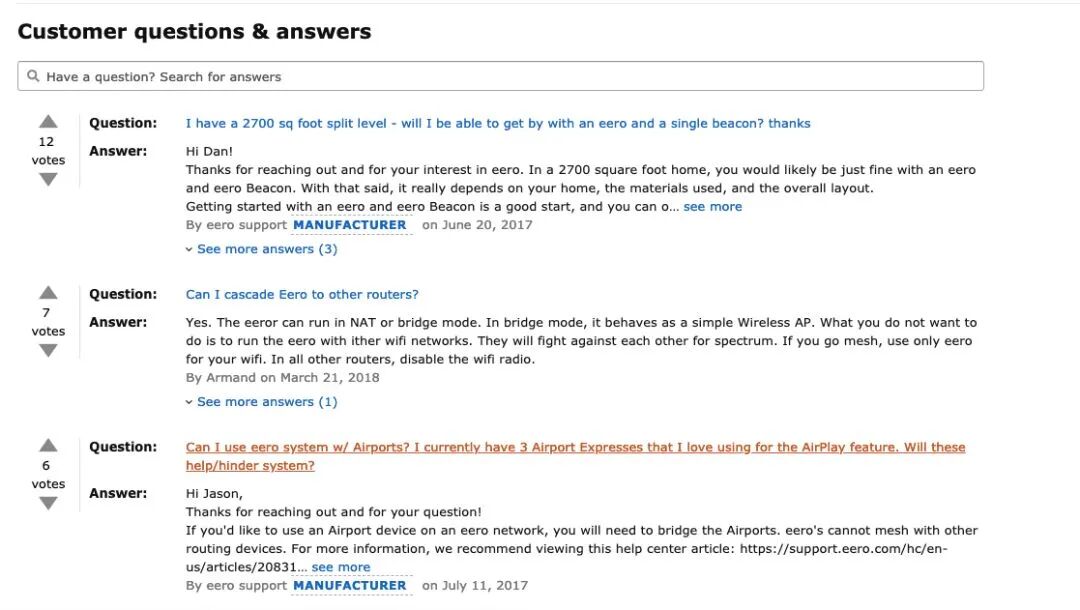 抛开产品本身质量问题等方面不说,我们可以拜托朋友在我们的亚马逊QA下面进行提问一些作为买家最关心的问题,比如说使用方式,是否合适欧规/美规,是否适配xxx款产品,保修,配件等等问题,然后我们再用自己的卖家账号去一一回复。