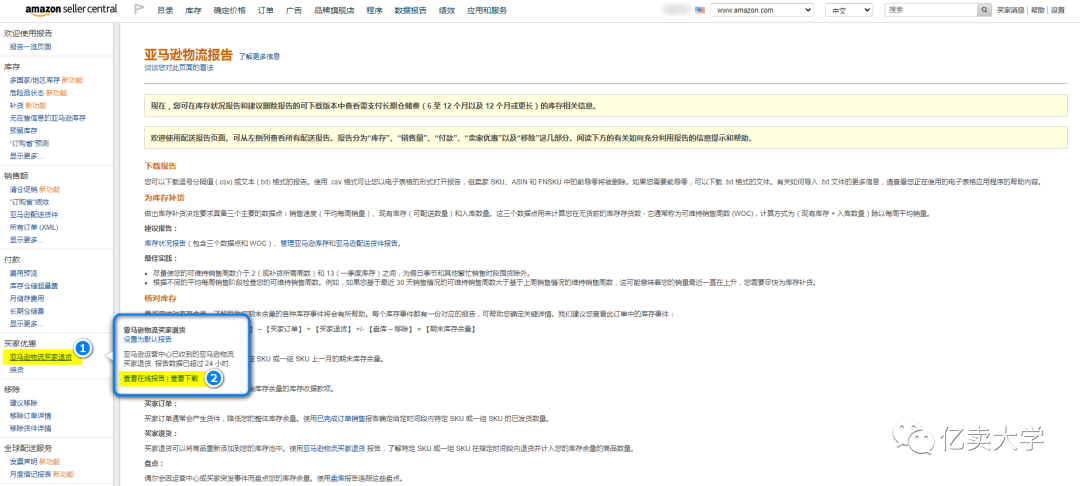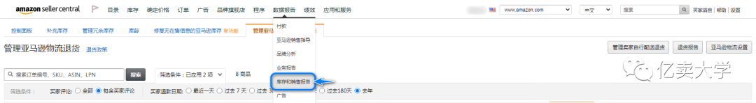 数据报告 > 库存和销售报告 > 亚马逊物流买家退货
