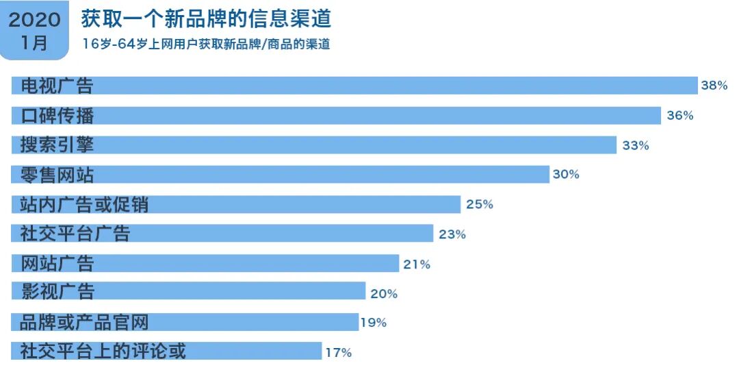 越来越多消费者以互联网电视流媒体视频取代传统的电视观看模式,相较于其他信息渠道,38%(1)的消费者更容易从电视广告中获取品牌或商品信息。