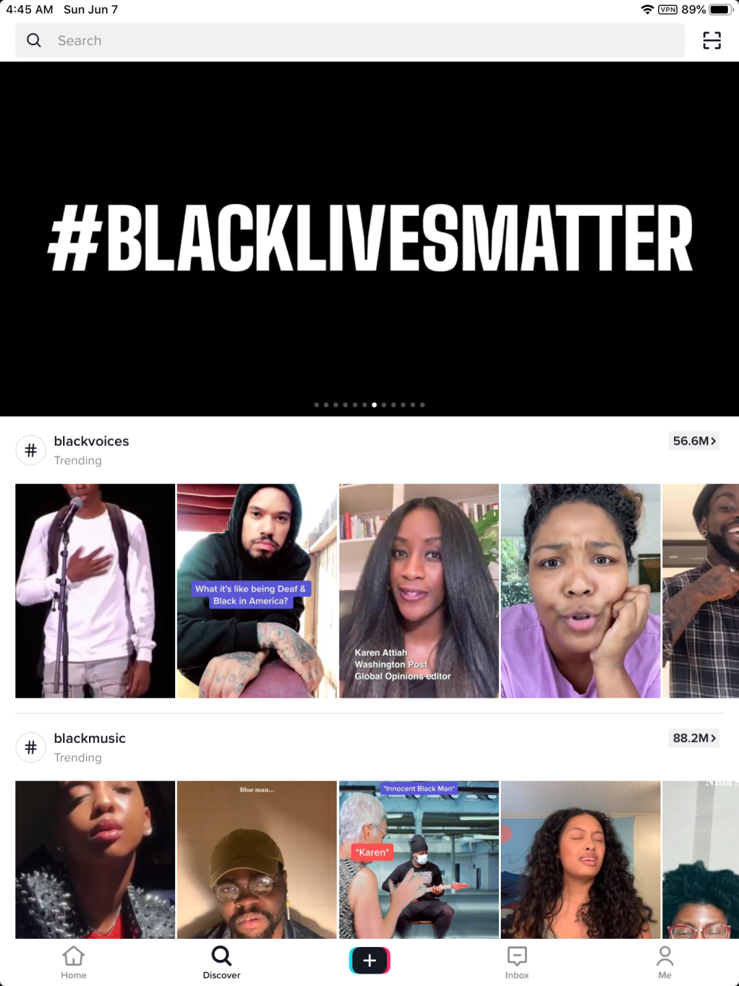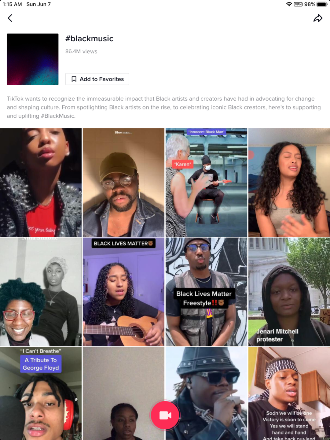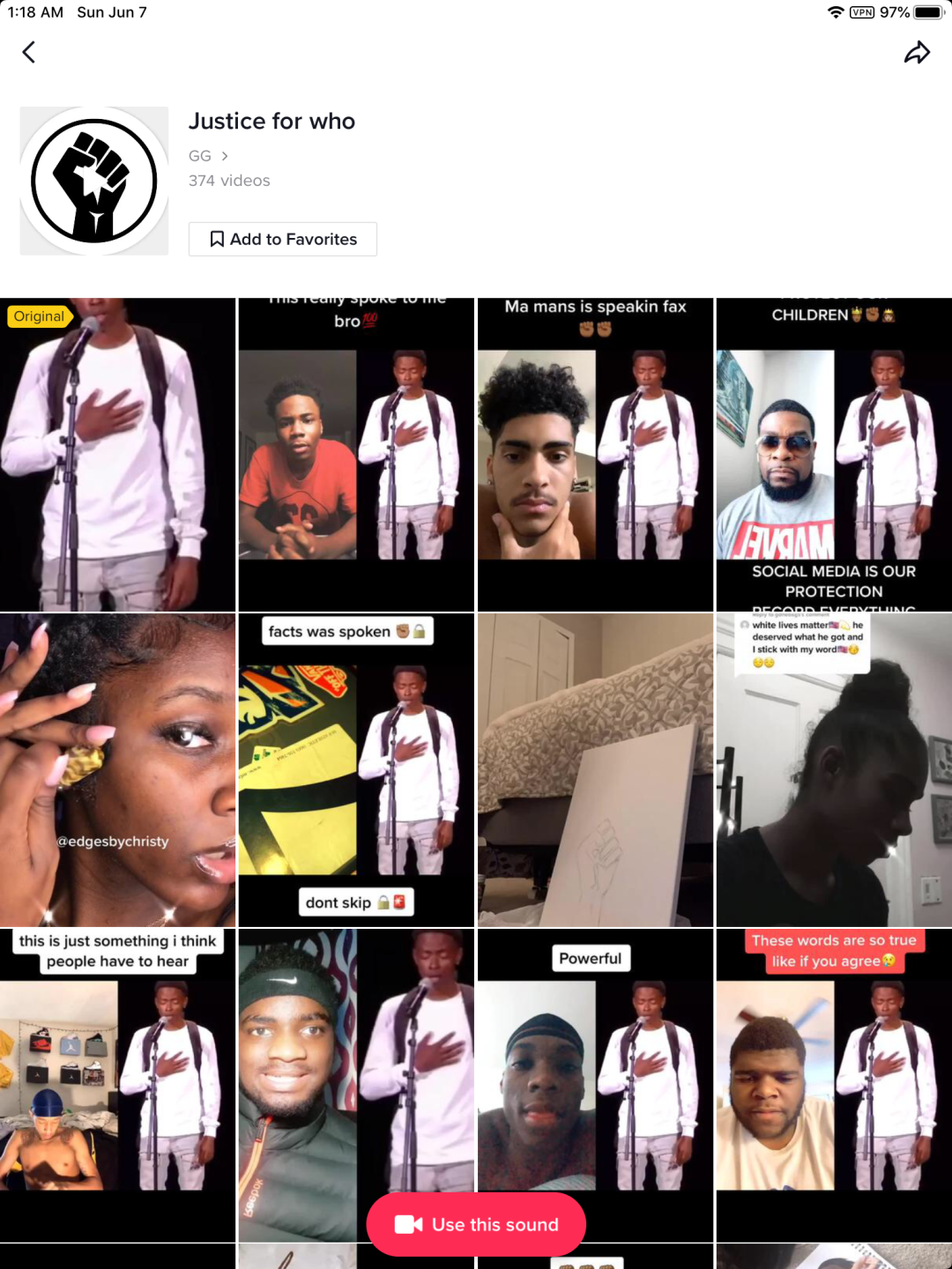 比如#blackvoices 话题下的这个视频,被很多人合拍了,目前已经有374个视频了。
