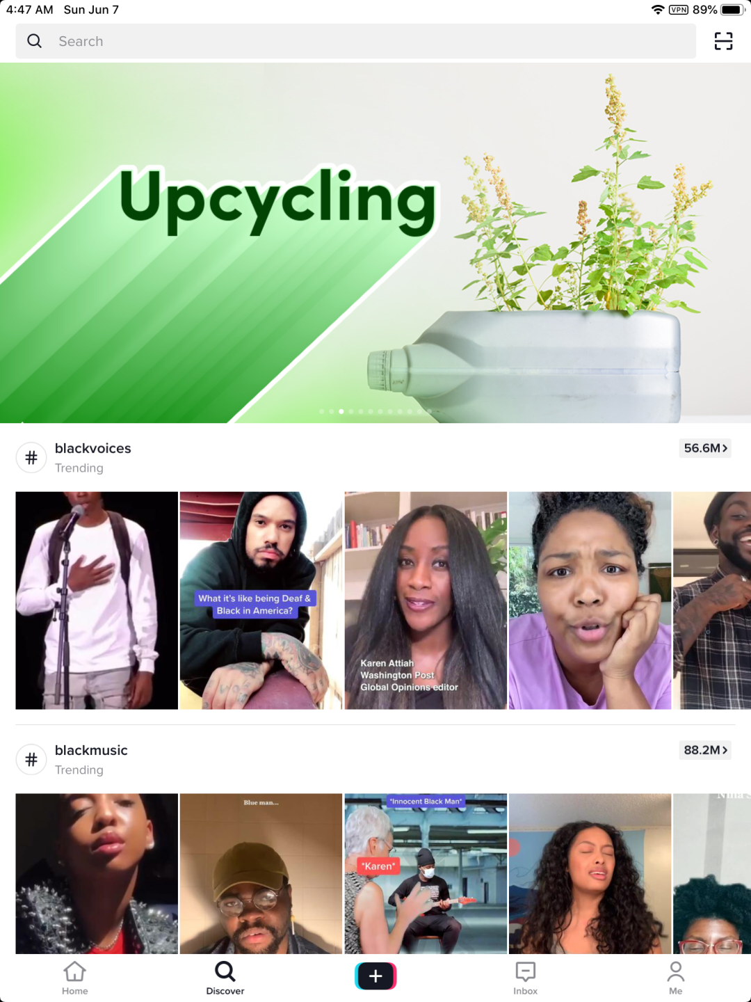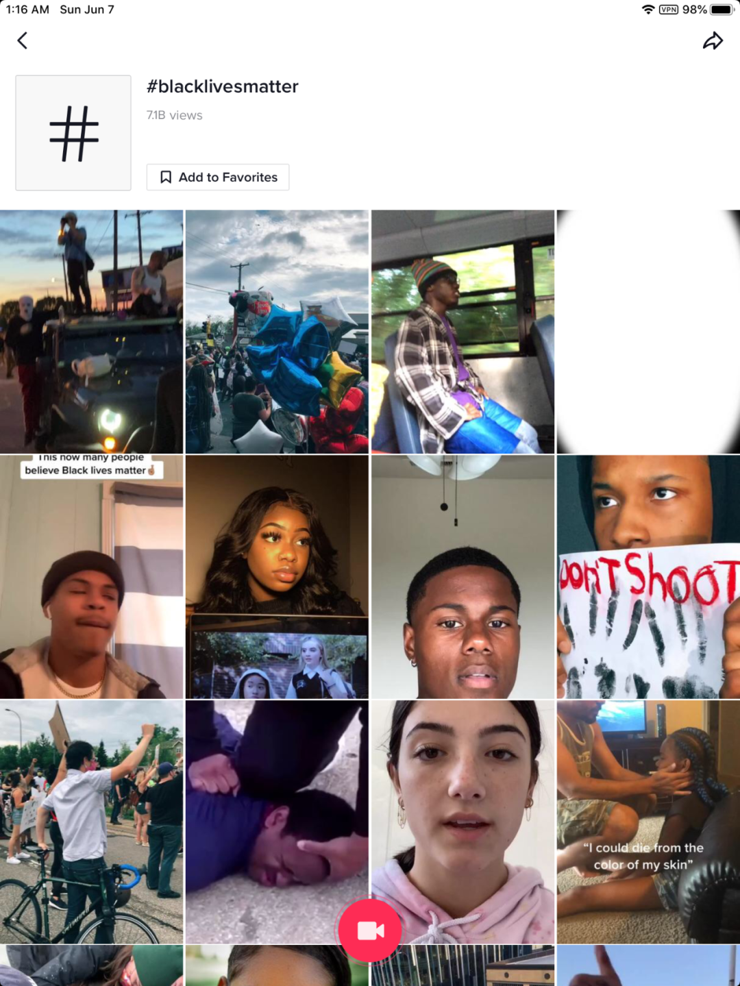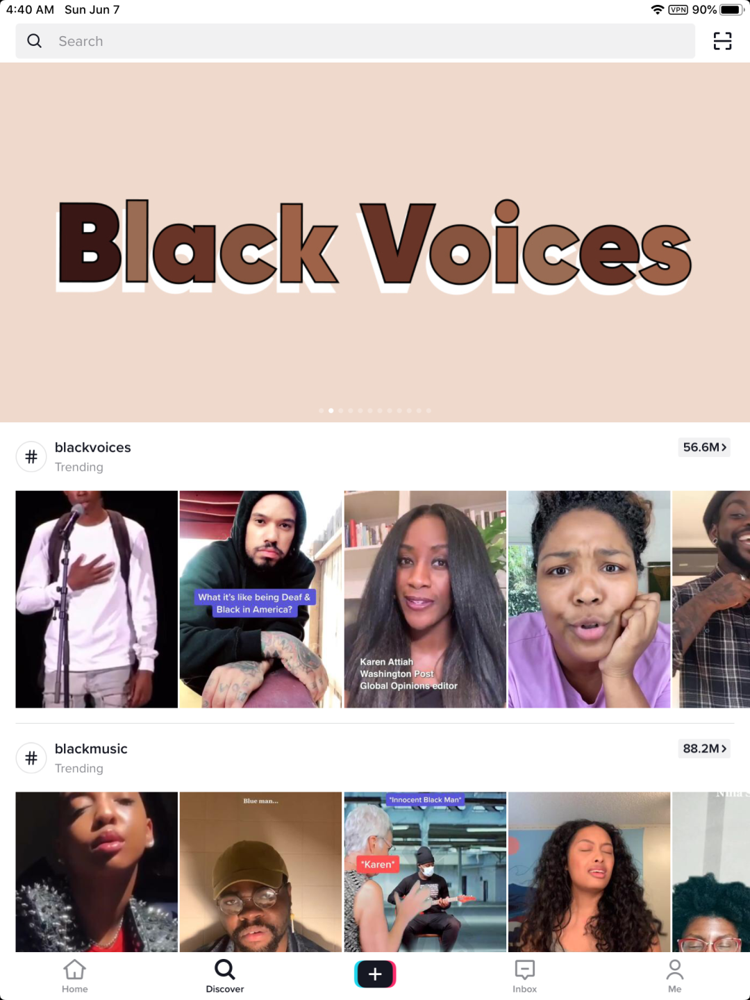 比如#blackvoices 话题下的这个视频,被很多人合拍了,目前已经有374个视频了。