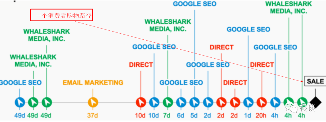多触点归因:按照各个参与渠道的不同时间段递减都分配功劳,由于比较复杂,就不多阐述。