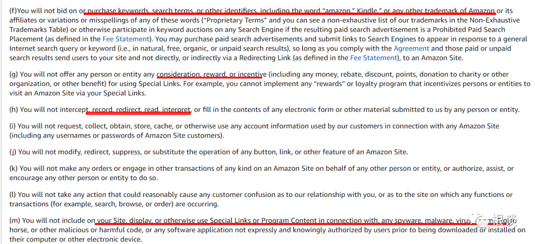 最简单的办法,去看看头部广告主的联盟协议,所有最快赚钱的办法都写在反作弊协议(刑法)里,简单截了3张图的个别条款,发现三家对于brand key word,incentive,cookie stuffing,iframes都有提及,接下来简单聊聊市面上联盟客作弊特征的主要形式。