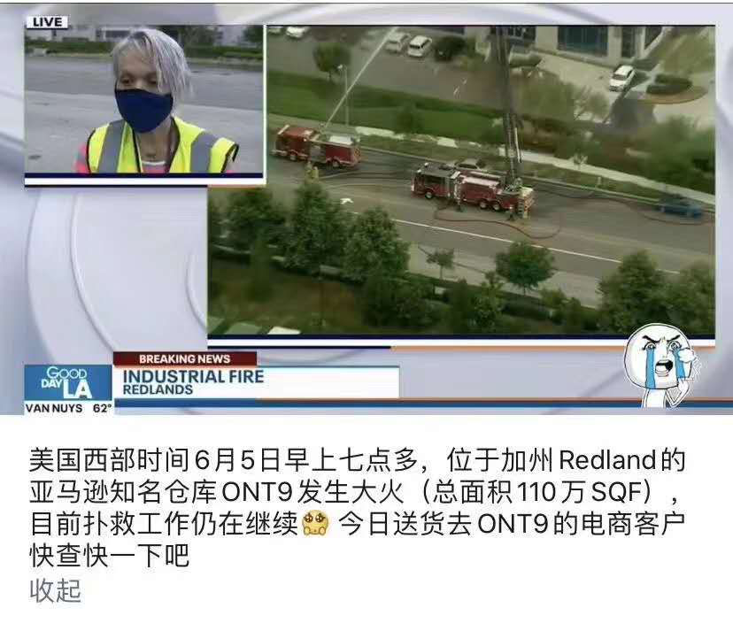 现场录像显示,巨大的火焰吞没了建筑物,黑烟滚滚而下。消防员将水流洒在似乎吞没了几乎所有蔓延结构的火焰上,并开始燃烧停在装卸码头的卡车拖车,其中一些带有亚马逊标志。目前尚不清楚起火的原因。消防官员尚未报告任何伤害。