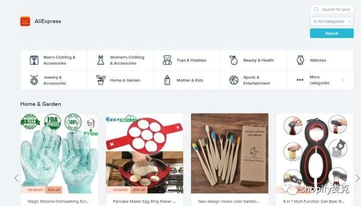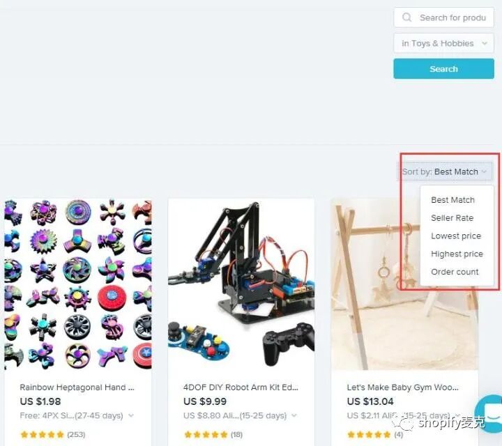 具体操作:shopify后台APP里点击进入oberlo-点击搜索产品,出现下面: