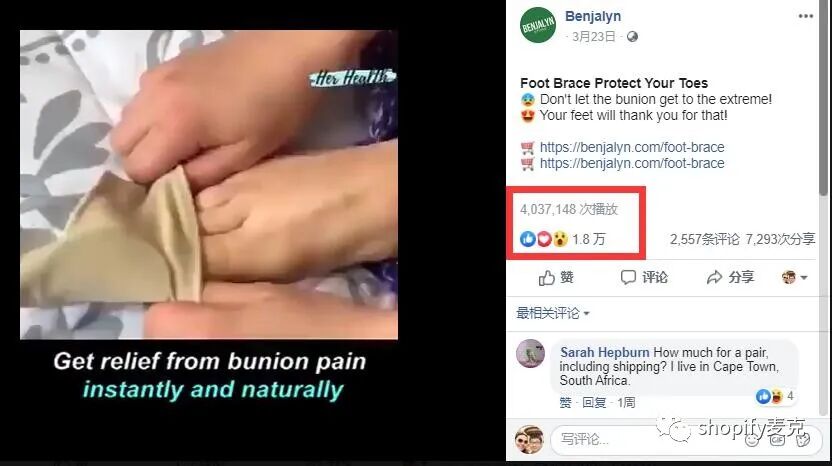 欧美疫情开始的时候,瑜伽裤卖疯了。如果你错过了,还可以尝试其它健身相关产品。我就看到一个不起眼的小东西:缠在脚上大拇指和部分脚面,减少脚部受伤的产品。东西本身估计就几块钱人民币,卖家卖15刀。到目前广告视频有400多万播放,1万8的点赞和表情。