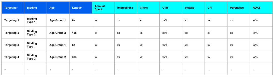 Campaign层级,广告组层级,广告层级,三个词困扰了无数投放新手,如何做到将广告合理化命名、从名称上进行广告细分呢?快来和小鲁班一起学习一下吧~ Q 为什么标准化广告活动命名很重要? 便于理解 重要信息一扫便知,无需点击进入查看 便于生成报告及数据分析 活动(Campaign)命名结构 以软件为例: System_Country_Date_CampaignType_Game Name_Additional Information 系统_国家_日期_活动类别_软件/游戏名称_附加信息 System (e.g. AND, IOS) 系统(e.g. 安卓, 苹果) Country (e.g. US, CA, UK ) 国家(e.g. 美国,加拿大,英国) Date (e.g. 260619,251218) 日期(e.g. 20200601, 20200718) Objective (e.g. MAI, MAE, RF) 目的(e.g. App下载,App互动,到达率&暴露频次) App Name (e.g. GAME123, GAME456) 软件/游戏名字(e.g. xx游戏) Additional Information (e.g. Sales, CBO + minROAS) 其他附加信息 (e.g. 促销等其他需求) Example: AND_US_201218_MAI_GAME123_XMAS SALES 这样一来,我们就可以轻易从名字分辨我们的产品: 系统是安卓,投放地点是美国,活动开始日期2018年12月20日,活动目的是手机软件的下载量,软件是Game123,活动是在圣诞节(Christmas=XMas)优惠促销。 同理: 广告组(Adset)命名结构 以电商为例: Targeting_Placement_Optimization_Bidding_Gender_Age_Additional Information 投放目标_投放平台_优化目标_Bidding的方式_性别_投放年龄段_其他附加信息 Targeting (e.g. Borad, Interest, LAL, VBLAL) 投放目标(e.g. 广泛目标,兴趣定位目标,类似受众,新出的 value based lookalike audience ) Placement (e.g. FB, IG, AN, FBAN) 投放平台(e.g. Facebook,Instagram, Audience Network, FB和AN) Optimization (e.g. Install, AEO, VO) 优化目标(e.g. 优化下载/按照,优化参与度/购买活动) Bidding (e.g. Auto, Manual, Target Cost, Cost Cap) 竞价方式(e.g.自动,手动,统一价格,控制成本并获得成本内最多结果) Gender (e.g. M, F, Mix) 性别(e.g. 男性,女性,男女不限) Age (e.g. 1824, 2532, 32+) 投放年龄段(e.g. 18-24,25-32,40-65+) Additional Information (e.g. Playable, Test) 其他附加信息 Example:VBLAL_FBIG_VO_Target_Cost_M_1824_Creative Test 广告(Ads)层级命名结构 以视频为例: Title_Format_Dimension_Length_Additional Information 标题_广告形式_规格_长短_其他信息 Title (e.g. Video01, Video02) 标题(e.g. 视频1,视频2 ) Format (e.g. Image, Video, Carousel Video) 广告形式(e.g. 图片,视频,轮播视频) Dimension (e.g. Square, Vertical, Landscape, Static) 规格(e.g. 方形,静态,景观) Length (e.g. 6s, 10s, 30s) 长短尺寸(e.g. 6秒,10秒 ) Additional Information (e.g. Playable, Test) 其他信息 Example: VV01_VIDEO_Square_15s_Dark Theme 我们只需要解析Campaign,Adset和Ads的名字就可以制作出如下的数据表: 这样我们便可以清晰的看出我们不同的广告长度、创意、人群以及竞价方式等对于我们转化量、点击率等结果的影响,以便于后期投放优化。 优点 整个UA团队都可以轻易看懂并且操作互相建立的新广告 管理和解析时,无需查看广告便可知道所有重要信息 具有更精细的细分级别(Ads Manager本身没有的) 在创建广告时会有更多的附件工作(归纳/命名) 在第一次尝试新的系统命名时会面临新旧命名规则不一致 需要与外部(经销商,代运营)保持命名规则一致 缺点 好啦~想必你这么聪明一定学会了标准化命名规则~ 那么还不快上手试一试~