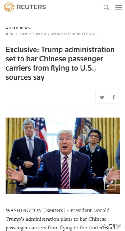 由于中国没有允许美国的航空公司提供往来中国的航班服务,所以美国也将暂停允许中国的航空公司提供往来美国的航班。