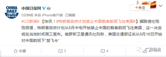 根据中国各航空公司此前发布的6月份航班计划,该命令将影响国航运营的北京-洛杉矶航线、南航运营的广州-洛杉矶航线、东航运营的上海-纽约航线等多条航线。