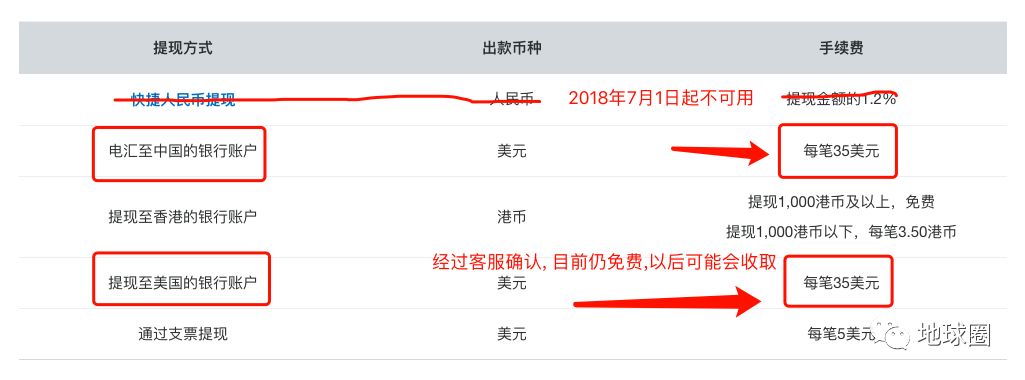 如图所示:Paypal在2018年7月1日以后取消与连连支付的快捷人民币提现合作后, 目前主要有四种提现方式:电汇至国内银行、美国本地银行提现、两地一卡通/香港银行账户和支票。