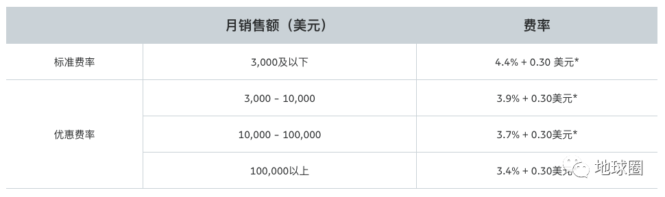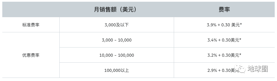 当月累积收款10W刀时手续费以上是:2.9%+0.3。