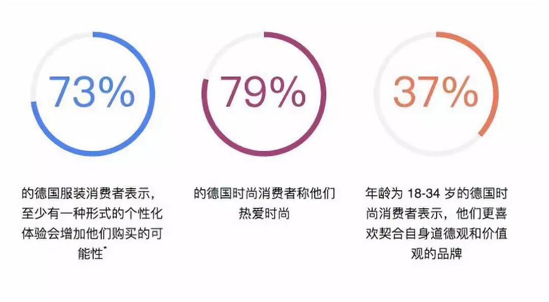 消费者对时尚的兴趣越来越多地聚焦在表达身份上,而电子商务的发展为他们提供了更多表达个性的方式。然而,这些电商平台也会让消费者在购物时变得更加迟疑不决。对于时尚消费者中想要尽快完成时尚购物的那 33% 的人而言,更具个性化的体验有助于激发他们的购物灵感,让他们更快找到称心如意的商品。事实上,73% 的德国服装消费者表示,至少有一种形式的个性化体验会增加他们购买的可能性。因此,对于品牌来说,适时向消费者提供相关的信息有助于减少他们的纠结并激发购买行动。