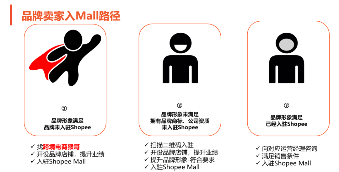 最后,敲黑板再总结一下,品牌卖家进Shopee Mall的三条路径: