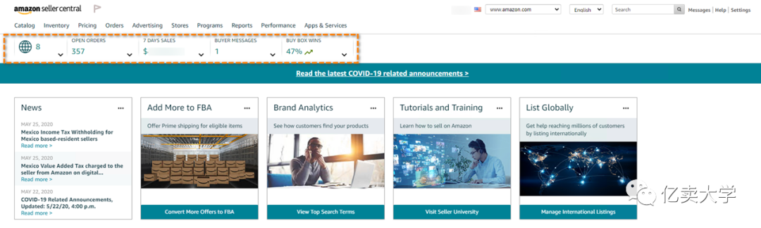 店铺绩效数据,如BUY BOX Wins、Feedback等