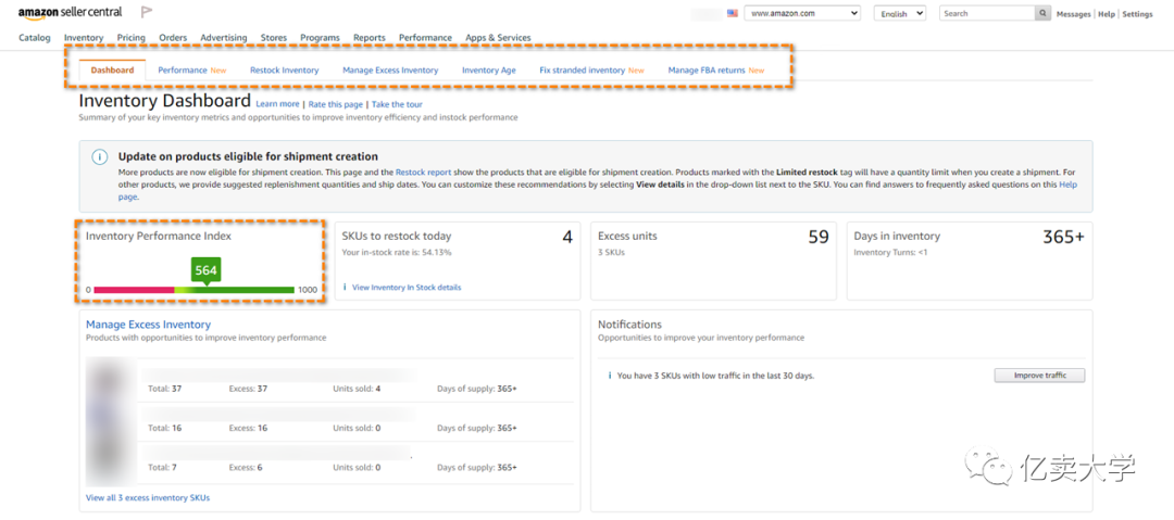 ▲亚马逊Inventory版块可查看多种库存数据▲