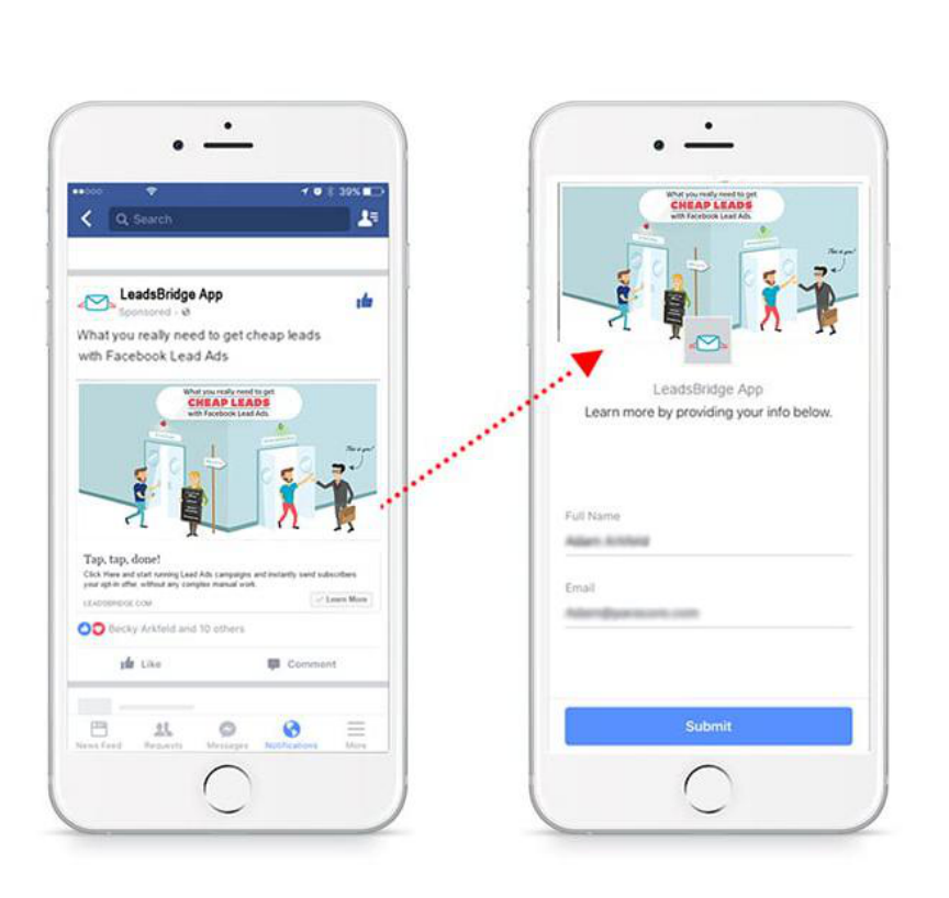 利用线索广告让用户填写的联系表单(或“即时表单”)会以原生形式显示在 Facebook 和 Instagram 上。