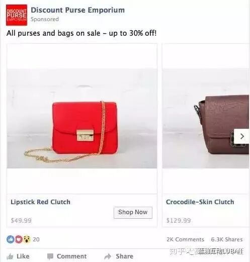 二 产品购买类广告 对于电商来说,做广告的目的基本上就是让用户产生购买行为,以下几种广告形式都比较适合。 1. Facebook轮播广告(Carousel Ads) 现在最常见的广告就是Carousel广告。企业可以根据目标受众的兴趣选择广告。每一条广告都可以包含图片或者视频,并且能够自动循环播放或者由观看者进行点击滑动。 这种广告能够一次性为用户带去丰富的产品信息。为了实现最大化Carousel广告的作用,您需要用讲述故事的形式排列这些图片,以方便观看者能够从头到尾看完整条广告。 图像大小:1080*1080像素 图像宽高比例:1:1 图像文件类型:.JPEG或者.PNG文件 视频长度:15秒,240分钟(最多) 视频尺寸:1080像素宽*1080像素高 视频宽高比:1:1 视频分辨率:720P(最低) 视频文件大小:4GB(最大) 视频文件格式:.MP4或者.MOV文件 建议: 注重轮播素材的互动性,创意要诱导客户划动轮播图片,潜移默化中接收到更多的信息。 轮播因其可以展示多张图片,因此多种款式多种配色的产品可以使用轮播进行推广。 2. Facebook画布广告(Collection/Canvas Ads) 如果你的受众倾向于在手机设备上进行购物,那么这一类型的广告就比较适合。画布广告对于希望创造沉浸式体验的企业是非常有用的。 画布广告包含供用户进行交互的视频、图像和轮播。甚至还有一种倾斜转盘功能,可让内容沉浸其中。此外,你可以标记产品,供用户阅览产品目录,阅读评论和查看视频,并购买。 图像: 图像大小:1080像素x 1920像素 图像宽高比:16:9 图像文件格式:JPEG或PNG 图像数量:最多20张照片 建议1: 尽管全屏图像的宽度为1080像素,高度为1920像素,但您可以将图像变得更宽,以便实现倾斜转平移功能。 视频: 视频尺寸:1080像素x 1920像素 视频分辨率:720p(最低) 视频文件类型:.MP4或.MOV 视频宽高比:16:9 建议2: Facebook建议您对视频进行纵向定位,因为这直观地表明了观看者可能是横着拿手机的。 您可以根据需要在画布广告中添加尽可能多的视频,但不建议集体运行时间超过2分钟。长时间的视频会导致视频加载时间过长,从而降低用户的参与度。 普通用户只能使用30秒的画布广告,因此较长的视频会导致不太完整的视图。更长时间、更丰富的视频往往会更好的发挥Facebook的广告表现。 3. Facebook动态广告(Dynamic Ads) 动态广告的主要是针对那些已经进入过你的店铺了解过你的用户。它的目的是对客户进行二次引导。 尽管动态Facebook广告看起来跟其他广告没什么区别,但是它们的设置和功能是独一无二的。你不需要为单个产品创建广告,而是创建一个模板,用于自动填充广告,并提供有关从数据feed中提取的产品或者服务的信息。 动态广告专门针对你的产品感兴趣的用户。Facebook能够从你的Facebook像素和SDK中提取信息,通过采取行动,例如点击广告或者参考你的网站上的产品并将其添加到购物车,向展示对你产品感兴趣的用户展示广告。 这种广告展示的内容主要都是用户最近浏览过的产品信息。 该流程大部分是自动化的,因为创建单个模板会将正确的产品提供给正确的用户。这意味着动态广告的最大好处是商家倾向于以较低的每次点击费用获得更多的转化次数。 一旦你的产品添加了动态广告形式,系统将自动从提供的数据源进行创建并填充,根据用户以往的行为自动推荐商品。你可以选择显示你的所有产品或者客户浏览过的产品,也可以将其添加到购物车中的或者购买过的产品。动态广告可以显示为轮播或者单幅图片广告,单个模板将在桌面和移动平台上投放广告。 关于动态广告最重要的是针对正确的受众。Facebook允许你定位尚未购买但显示感兴趣的用户。你可以排除最近向你购买的用户,以避免向不太可能购买的用户付费。你还会被要求设置一个窗口的保留时间,Facebook建议在30到90天内放置,以增加广告的曝光率。 4.Facebook线索广告(Lead Ads) Facebook lead广告被企业用来收集潜在客户的联系信息。通过线索广告,用户可以提供他们的信息(例如姓名、电话、邮箱)并注册以获取更多信息或请求下载资源。 图像大小:1200x 450像素 图像宽高比:16:9 图像文件类型:JPEG或PNG 图像数量:20张照片(最多) 建议: 尽管Facebook lead广告将显示400*150像素的图片,但是尺寸应为1200x450。 三 实体店访问类广告 除了电商,还有很多线下店铺会在Facebook上做广告,比如说便利店等。他们的广告主要是为了将人流吸引到线下店铺里。 1. Facebook本地广告(Local Awareness Ads) 这种传统的实体店,不适合大范围的做广告。只能针对本地的用户进行广告。而Facebook的 awareness Ads就最适合这一类群体了。 这些广告只会发送给在某一特定地域登录的用户。基本上会带有“call now”或者是“get directions”这种CTA语言。直接提供联系方式和地图导航的功能可以帮助用户到店铺进行购买。 2.Facebook事件广告(Event Ads) 这种广告就适合特定的事件活动。比如说,公司办见面会、情人节特别活动等等。它会根据地理位置和受众群体,然后发布邀请。一旦对方点击“join”,就能够接收到活动提醒。 3. 优惠广告(Offer Claim Ads) 还有一种事件广告,也就是在广告中做显示优惠活动。这种广告是一个电子优惠券,只要点击广告就可以兑换。优惠广告可以給消费者提供不同类型的优惠码、文本码、条形码和二维码等。取决于企业的设置。这些优惠码可以在实体店使用也可以在线上店铺使用。 请记住,您无