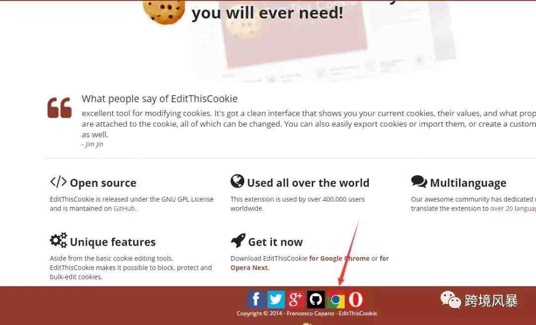 第一步添加饼干插件 打开www.editthiscookie.com网站 如图: