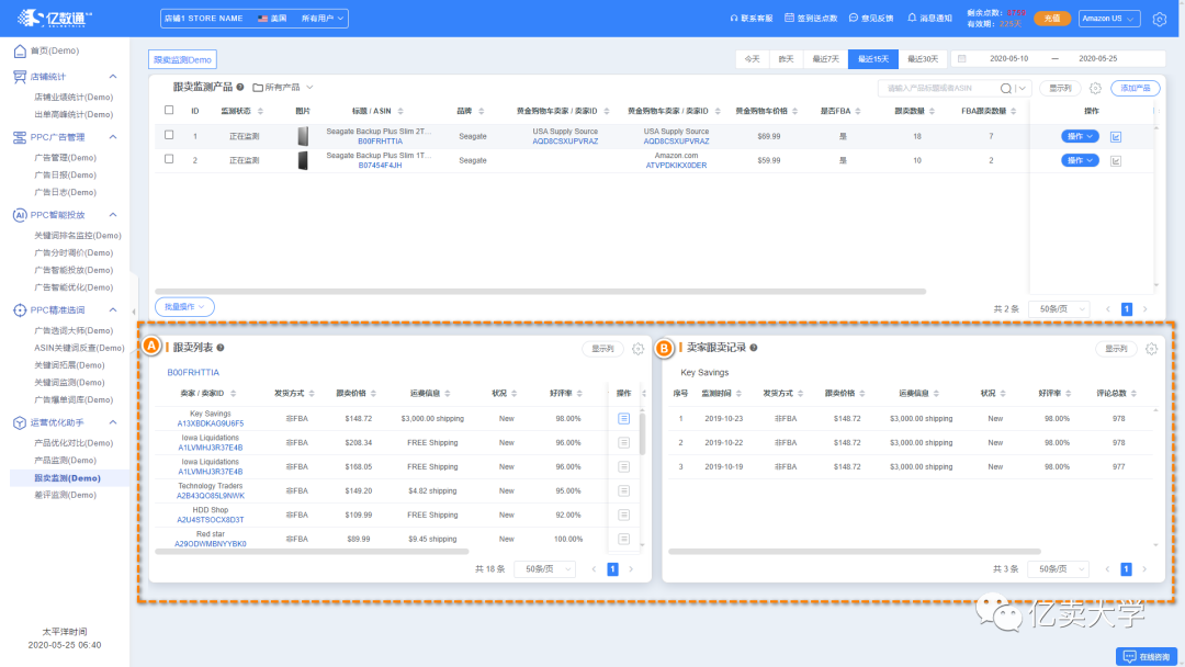跟踪亚马逊上任意产品的被跟卖记录,展示此产品下的所有跟卖卖家信息,和跟卖卖家的所有跟卖记录