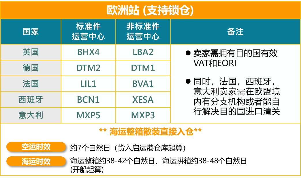 锁仓服务:免费将货物锁定在美国或欧洲指定的亚马逊运营中心,减少因分仓造成的额外成本,提升入库效率