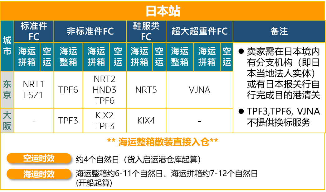 美国、欧洲、日本站AGL服务FBA仓库对照表。向右滑看不同站点信息!