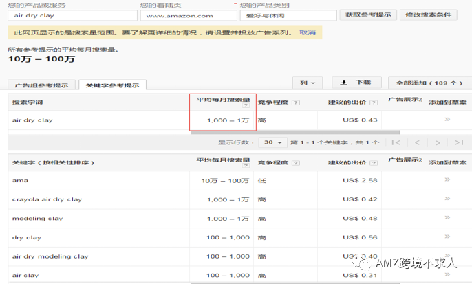 上面就是关键词规划师的一些操作步骤,仅供参考。一般建议先参考广告组参考提示里面的关键词进行首次筛选,把与产品相关的关键词都记录下来,然后再根据平均每月搜索量和建议的出价等方面来确定关键词是否需要留下。之后可以把筛选后的词放入Listing或者广告里推广。