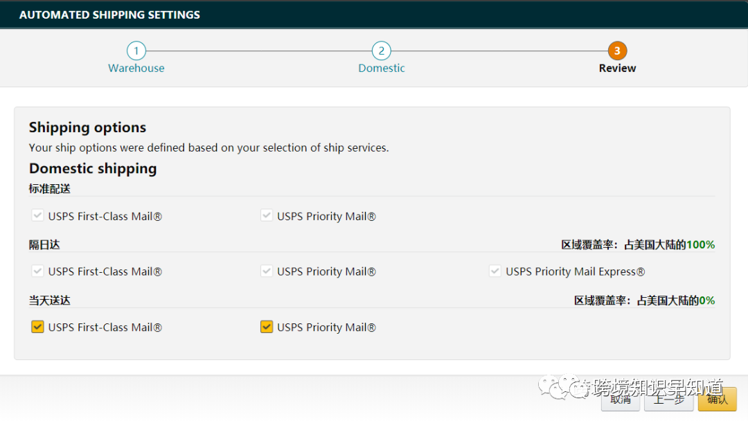 通常USPS价格较低,这里作为范例,选中后进入下一步