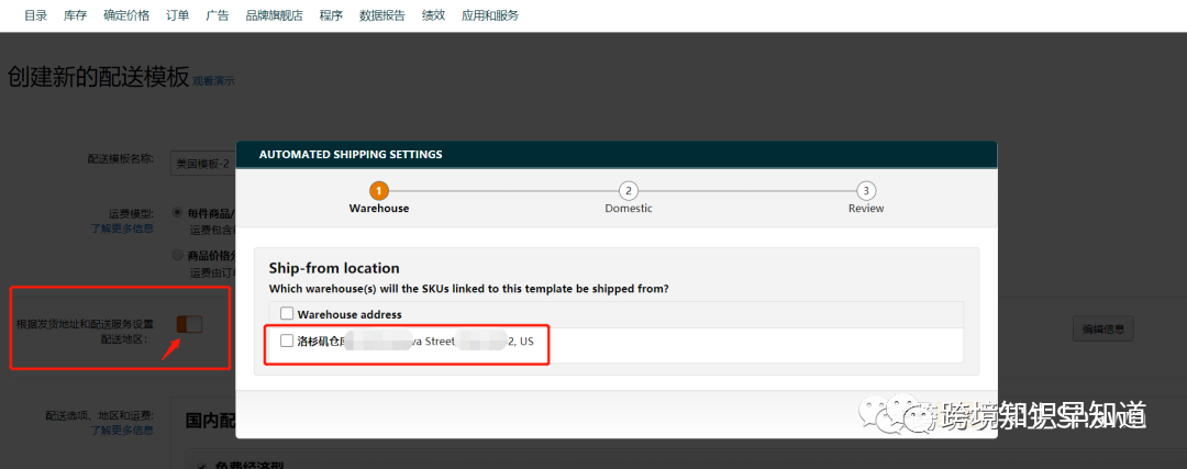 b.打开“根据发货地址和配送服务设置配送地区”选项