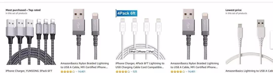 1、那么我们第一步就是采集大量的亚马逊与iPhone Charger相关的产品内容。