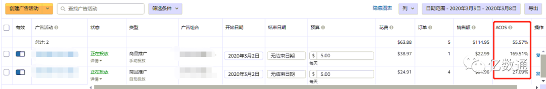 亚马逊后台广告管理页面中可以直接查看到ACoS这个指标,无需计算。