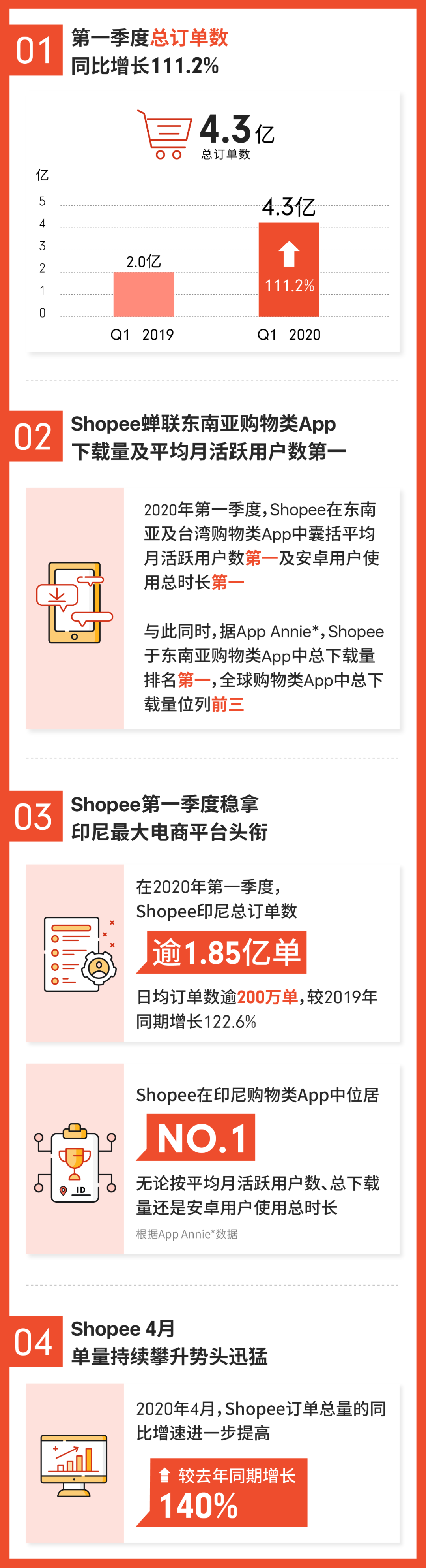 Shopee第一季度总订单数同比增长111.2%,蝉联东南亚购物类App下载量及月活跃用户数第一;在东南亚最大电商市场印尼,更凭借Q1逾1.85亿的订单量,稳拿东南亚头部市场印尼最大电商平台头衔。同时,Shopee 4月订单量较去年同期增长140%以上,以乘风破浪之势引领跨境卖家出海扬帆,为国货铸造新主场。