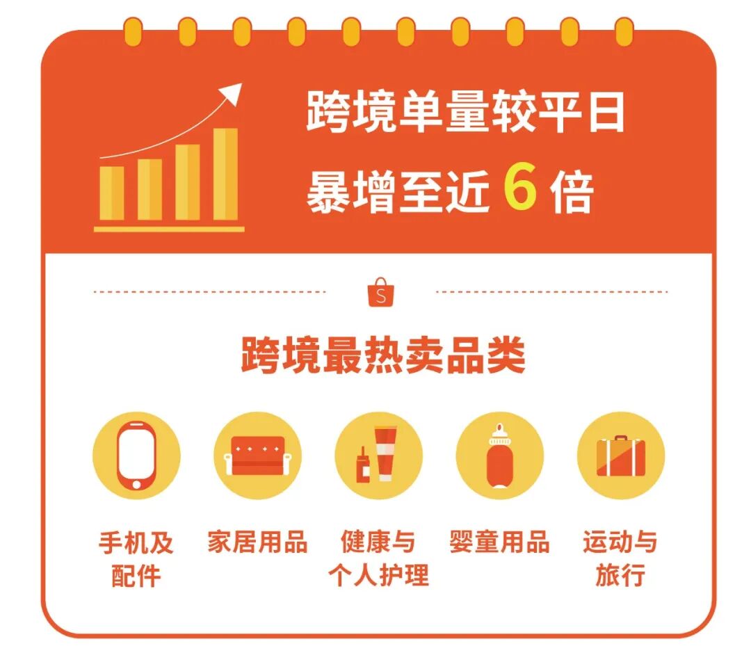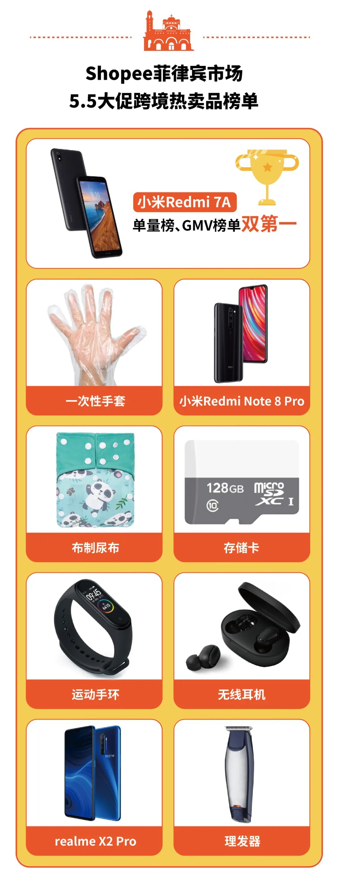 今年Shopee菲律宾市场5.5大促非比寻常,作为当地新冠疫情平稳后的首场大促,展现出强大的消费爆发力。跨境业务表现创新高,5.5当日单量暴涨至平日近6倍。手机及配件、家居用品、健康与个人护理、婴童用品、运动与旅行为跨境前五热卖品类。