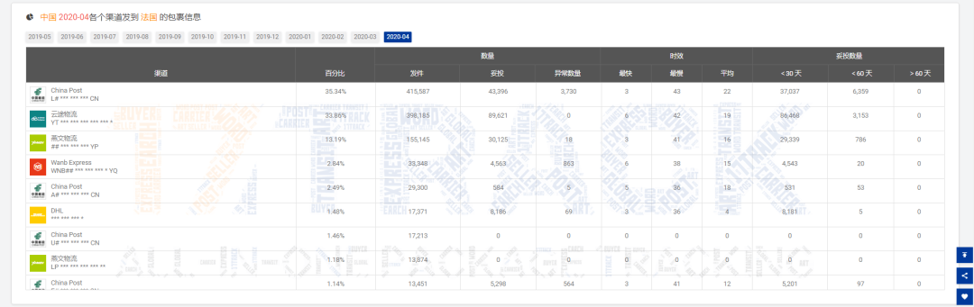 由于全球疫情仍然严骏的影响,截止5月15日的统计,4月份的包裹时效依旧不理想,其中在劳动节期间,17TRACK收到非常多来自全球用户的邮件,咨询包裹的运输问题,邮件量相当于以往圣诞节期间收到的数量;妥投率(取样)≠该渠道的全部妥投率,由于整体的妥投率很低,本期重点则关注[异常数量]