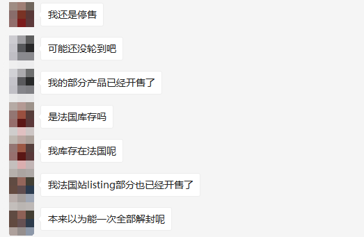 在卖方通卖家交流群里,不少法国站卖家都表示自己的listing可以开售了!!!