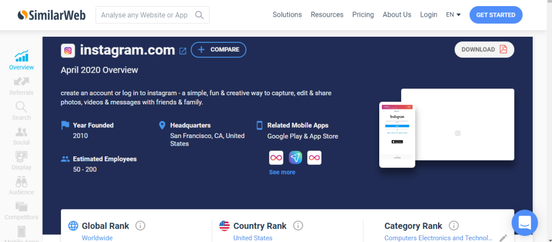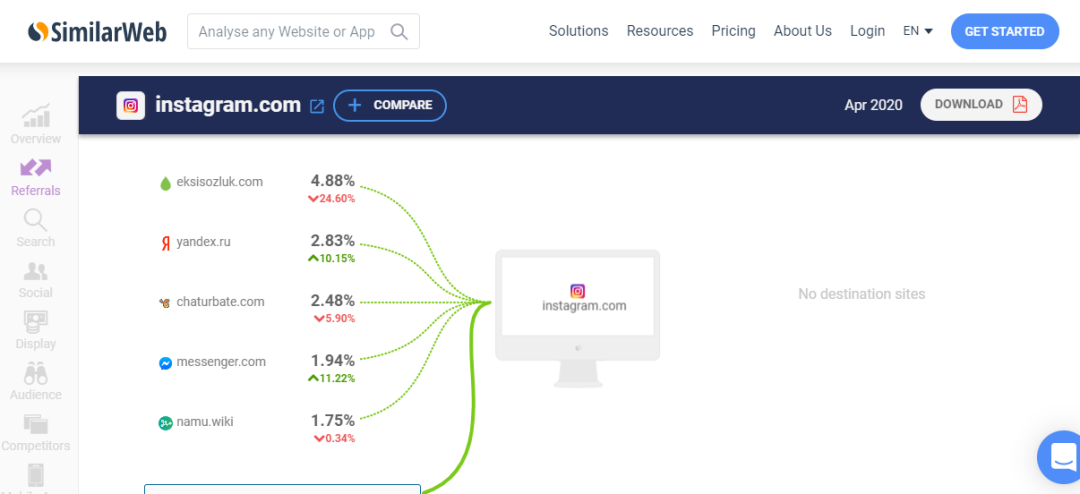 同时我还要推荐另外一个谷歌插件SimilarWeb (www.similarweb.com)这个网址的功能真的非常强大, 会自动介绍“待查询网址”的功能, 受众国家, 月访问量, 流量来源和去向,还有客户主要访问的类目, 自然付费流量占比以及相关网址, 如下图所示