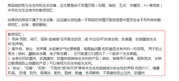 后来开case发现:卖家listing里存在某些属性涉及杀虫剂的敏感词,一旦卖家listing中含有某些敏感词汇被系统自动检测后就会被强制下架。