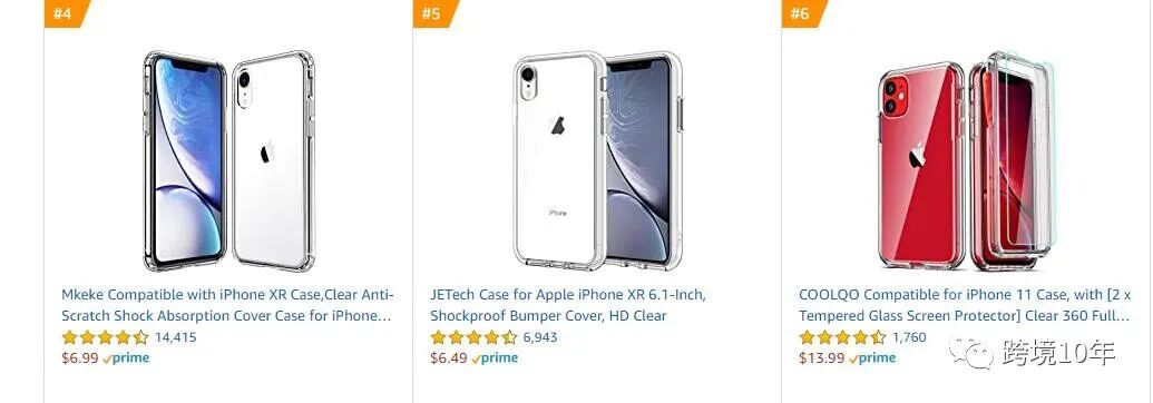 Mkeke(定制VP始祖),TORRAS、Jetech、Spigen,ESR - 刷!这几个品牌是争夺透明壳的头部卖家,凭借着粉丝群体,黑科技,测评资源体系还有感谢卡,新品上架1个月-1个半月评价基数在300+,甚者1000+(按照留评比例最起码一个月刷了1500-2000单,白花花的银子哎)。当然他们的产品质量肯定是最优的。顺带再抢夺下手机壳类目其他类型的市场份额(磨砂喷油、硅胶、三防、背面时尚图案)。