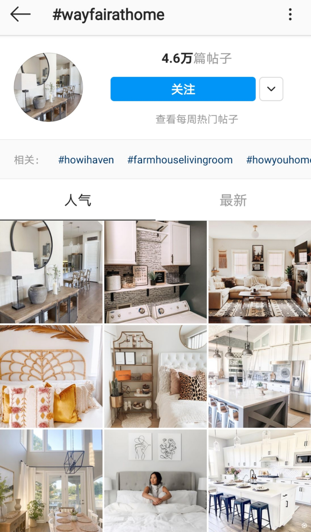 线上家居用品商城Wayfair 曾在Instagram掀起主题为 #WayfairAtHome的线上营销活动,受众可以拍摄上传他们在家中Wayfair产品的相关照片,展现自己的家居用品搭配能力、审美水平、生活品质和精致度等等……