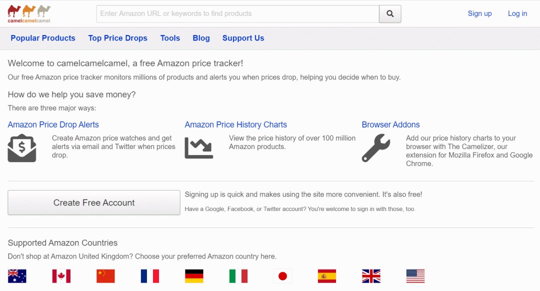 有些卖家选择Keepa而不是CamelCamelCamel的另一个原因是,它在巴西,印度和墨西哥(但中国除外)等其他国家/地区无法使用它。