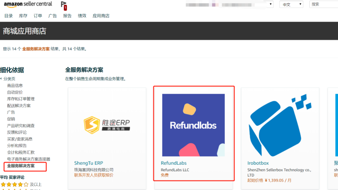 退款管家(Refundlabs)是亚马逊软件商城中推荐的软件服务商: