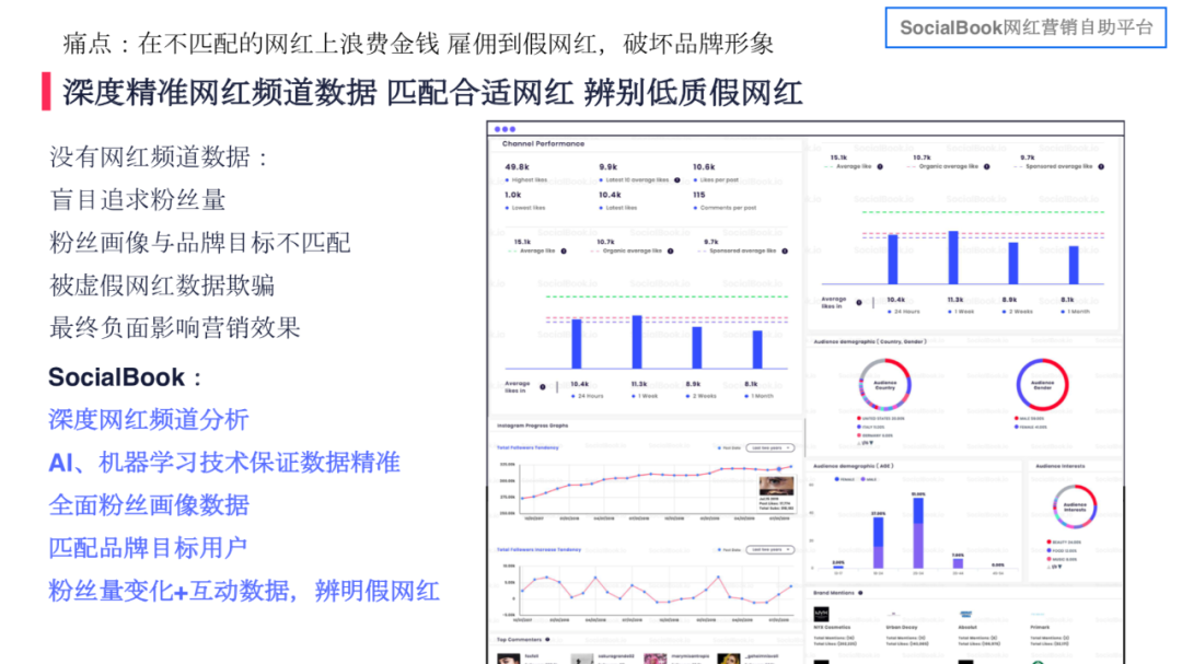 在每个网红的单人profile里,你可以看到该网红的频道和粉丝画像里的区域和性别图,这样你就可以知道该网红的受众区域是哪里=购买力来自哪里,以及产品性别属性的难题也一次性搞定了。