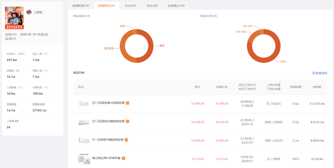 通过快手这场直播带货数据可以看到,卖得最火的三款空调销售额超过2亿,达到总销售额的三分之二!