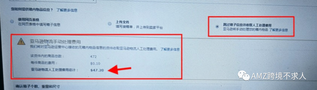 这个我们之前也有讲过,特别让他们注意的。箱子信息一定要手动填写,不然会造成不必要的花费,像上面的图片的一样有47多美金的花费。这里填的地址我们称“起运地”,这一栏必须用拼音或者英文填写中国的实际发货地址。但是这个地址也可能存在潜在关联的风险,避免关联可以填写和自己营业执照地址一致即可。4、轻小货件的产品可以和标准货件产品一个发货吗?会不会分仓?