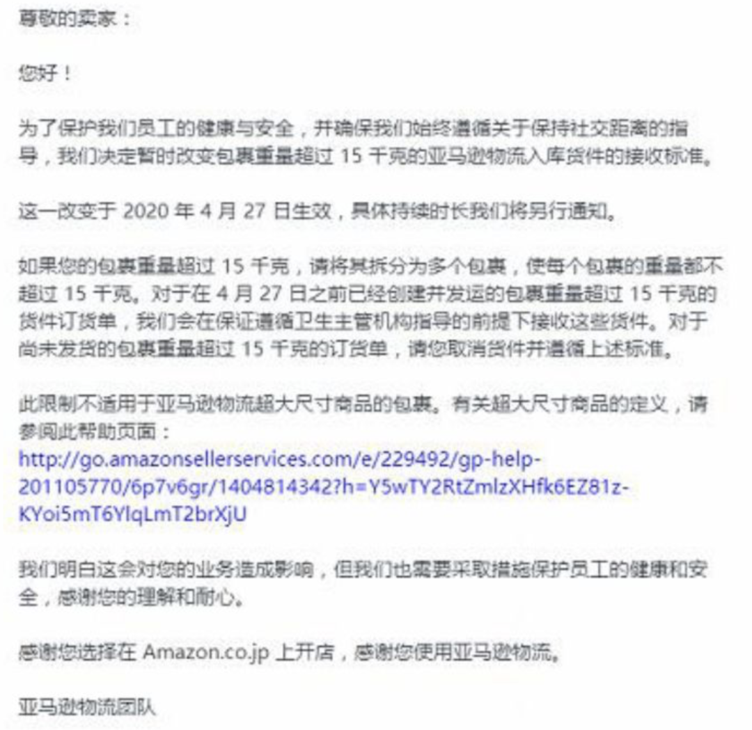 日本站FBA物流进仓15kg上限的问题,官网也回复了是真的。建议大家现在创建发货都要控制在一个箱子15kg以下。如果已经发货了请尽快开case,看下日本仓库是否可以接收,随时留意后台以及注册邮箱通知。10、听说亚马逊有个免仓储费、移除费的政策?是真的吗?