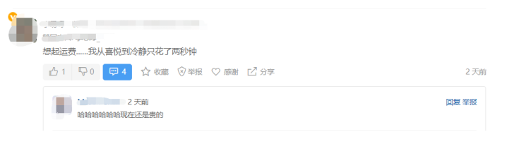 但高的离谱的物流费用向卖家泼了一盆冷水,有卖家吐槽:想起运费.....我从喜悦到冷静只花了两秒钟。