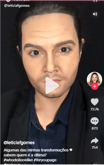 这位巴西有影响力的大V,大部分视频都是让人惊讶赞叹的化妆变脸术,她还是TikTok Brasil的顶级创作者。