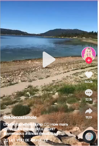 她的TikTok视频主要以喜剧和娱乐为中心,但一些视频展示她一些飞跃高难度体操动作。