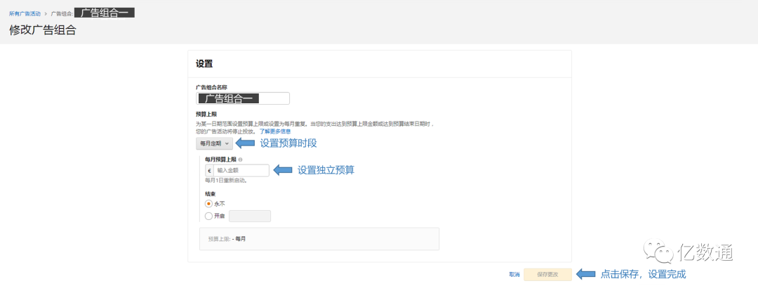 除此之外,广告组合还可以单独设置预算,为产品设置整体推广预算计划。通过一键下载账单即可轻松获取广告组合整体花费,组内各项广告活动支出一目了然。